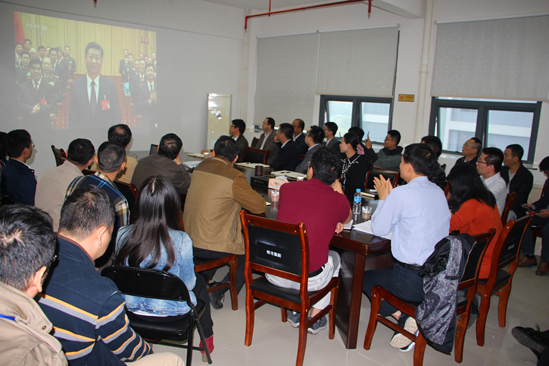 金秋十月,南國綠城花正艷。10月18日,黨的十九大在北京勝利開幕。當(dāng)日上午9時(shí),綠港集團(tuán)黨委組織集團(tuán)公司領(lǐng)導(dǎo)班子全體成員、董事長(zhǎng)助理、總經(jīng)理助理,各部門、各子公司負(fù)責(zé)人及公司全體黨員,在麗匯大廈415會(huì)議室集中收看中國共產(chǎn)黨第十九次全國代表大會(huì)開幕會(huì)直播盛況。全體與會(huì)人員懷著無比激動(dòng)的心情,聚精會(huì)神,靜靜聆聽,認(rèn)真記錄,不時(shí)爆發(fā)出熱烈的掌聲!在長(zhǎng)達(dá)三個(gè)半小時(shí)的收看過程中,整個(gè)會(huì)場(chǎng)始終保持莊嚴(yán)、肅穆、緊張、熱烈的良好氛圍。