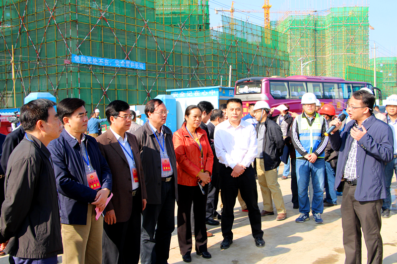 視察組一行在經(jīng)開(kāi)區(qū)管委會(huì)辦公區(qū)聽(tīng)取管委會(huì)全年工作匯報(bào)后,首先來(lái)到自治區(qū)為民辦實(shí)事棚戶區(qū)改造項(xiàng)目——新港家園項(xiàng)目現(xiàn)場(chǎng)調(diào)研指導(dǎo)工作。綠港集團(tuán)黨委書記、董事長(zhǎng)、總經(jīng)理?xiàng)顤|向人大代表們匯報(bào)了新港家園項(xiàng)目建設(shè)情況,他說(shuō),新港家園作為自治區(qū)為民辦實(shí)事統(tǒng)籌推進(jìn)的棚戶區(qū)改造項(xiàng)目,承擔(dān)著經(jīng)開(kāi)區(qū)吳圩鎮(zhèn)被征地拆遷農(nóng)民的安置任務(wù),事關(guān)空港經(jīng)濟(jì)區(qū)建設(shè)發(fā)展的大局。綠港集團(tuán)作為建設(shè)業(yè)主,積極貫徹落實(shí)自治區(qū)、南寧市、經(jīng)開(kāi)區(qū)相關(guān)決策部署,根據(jù)“讓利于民、統(tǒng)一規(guī)劃、統(tǒng)一建設(shè)”總體開(kāi)發(fā)思路,充分發(fā)揮綠港鐵軍精神,通過(guò)創(chuàng)新項(xiàng)目管理模式,抽調(diào)精干力量,狠抓工程質(zhì)量,快速有序的推進(jìn)項(xiàng)目建設(shè)工作。