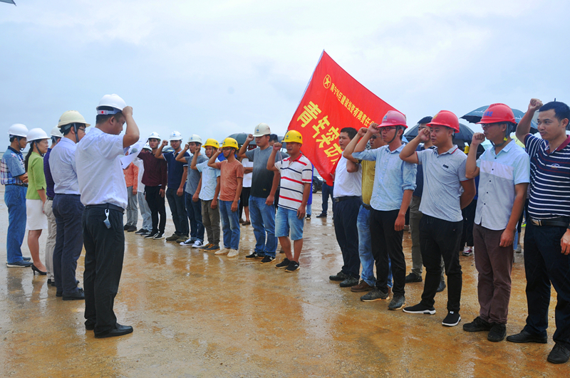 當(dāng)天,細(xì)雨蒙蒙,綠港集團(tuán)黨委書記、董事長、總經(jīng)理龔國強(qiáng)在項目現(xiàn)場給參建黨員授予了“黨員先鋒隊”旗幟,給參建團(tuán)員青年授予了“青年突擊隊”旗幟,綠港集團(tuán)副總經(jīng)理、工會主席黃麗琴給吳圩空港經(jīng)濟(jì)區(qū)重點項目推進(jìn)組授予了“工人先鋒號”錦旗,激勵廣大黨員干部青年同志們要以強(qiáng)烈的政治責(zé)任感、立足本職崗位,充分發(fā)揚不怕吃苦、勇于負(fù)重,敢打硬仗、能打硬仗的“綠港鐵軍”優(yōu)良傳統(tǒng),為吳圩空港經(jīng)濟(jì)區(qū)項目建設(shè)做貢獻(xiàn)。