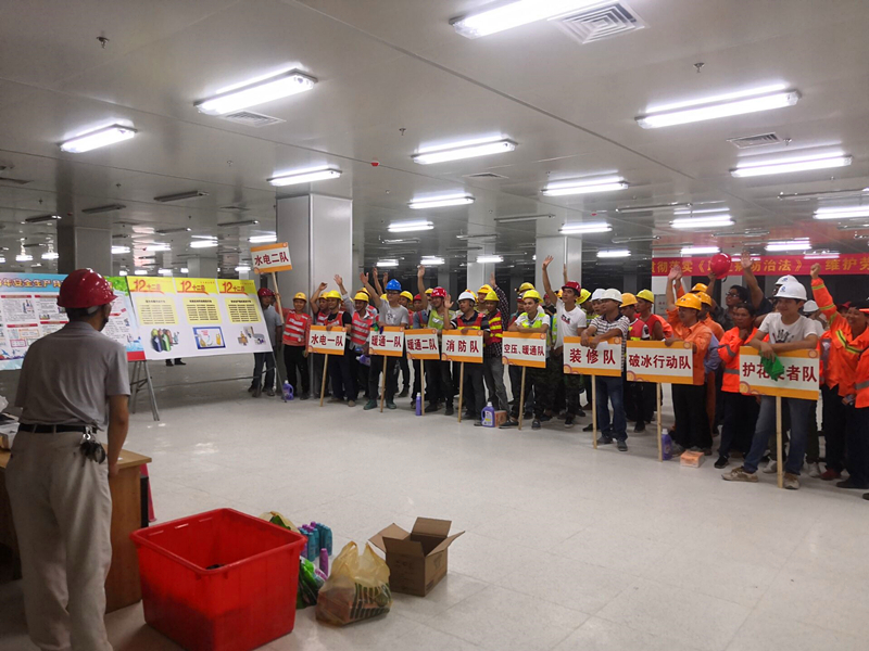 影片播放結(jié)束后,緊接著開展的是安全生產(chǎn)知識競賽活動。參與競賽的人員根據(jù)不同工種、不同部門分成9支隊(duì)伍。競賽內(nèi)容包括安全生產(chǎn)法律法規(guī)、應(yīng)急救援、消防、減災(zāi)防災(zāi)、勞動保護(hù)等多方面知識,競賽形式為舉手搶答。競賽過程中,9支代表隊(duì)你追我趕,毫不示弱,戰(zhàn)況十分激烈。選手們的活躍表現(xiàn)不時(shí)引來陣陣掌聲和歡笑聲,即使中途突發(fā)工地停電狀況,也未能澆滅大家的熱情,比賽在高漲的氣氛中繼續(xù)進(jìn)行。此次競賽以寓教于樂的形式對管理人員和一線施工人員進(jìn)行安全知識普及,除進(jìn)一步提高其安全防范意識和應(yīng)對事故的處理能力,還豐富了大家的業(yè)余文化生活,為有效防止安全事故的發(fā)生提供了有利保障。