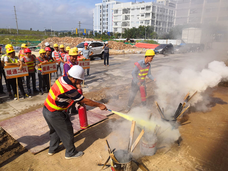 激烈的比賽結(jié)束后,消防應(yīng)急演練活動開始了。當(dāng)聽到“起火啦”的大喊聲,全體人員井然有序的進(jìn)行了逃生演習(xí)。伴隨著濃濃的煙霧,每個(gè)人捂著“濕毛巾”,沿著樓梯靠右一個(gè)接一個(gè)的快速撤離。當(dāng)全體人員走出廠房大門時(shí),工作人員在空地上點(diǎn)燃了幾盆火焰。公司質(zhì)安部負(fù)責(zé)人講解了干粉滅火器的使用方法后,大家進(jìn)行了踴躍的嘗試。在此次消防演習(xí)中,本著防患于未然的心態(tài),所有人員積極參與,專心聽講,既鞏固了消防安全知識,也提高了項(xiàng)目安全生產(chǎn)工作水平。