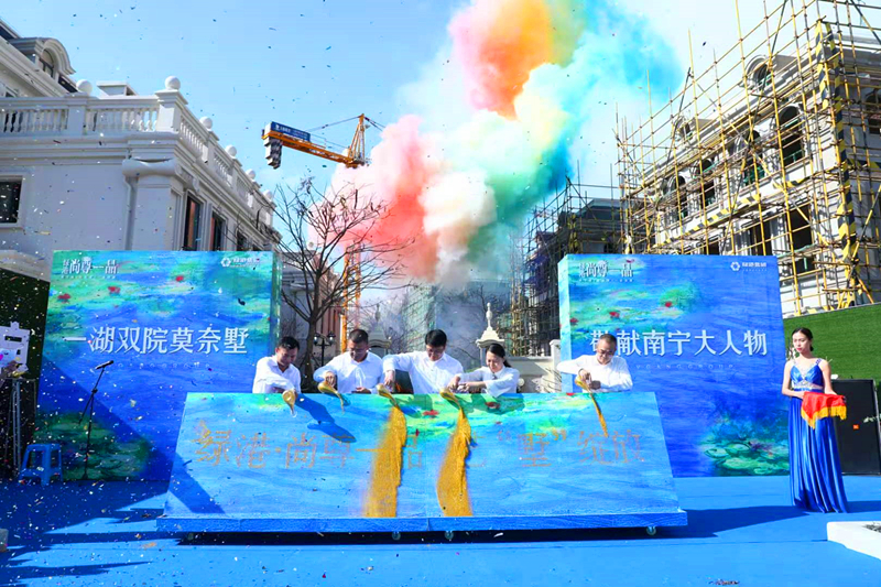 隨后,在現(xiàn)場嘉賓和客戶的見證和熱烈喝彩聲中,綠港集團(tuán)總經(jīng)理鄧?yán)^慧、綠港集團(tuán)副總經(jīng)理黃麗琴、綠港集團(tuán)副總經(jīng)理傅杰鋒、綠港集團(tuán)營銷管理中心副總經(jīng)理林崇凱、嘉通公司副總經(jīng)理何小勇攜手上臺(tái),共同啟動(dòng)開放儀式,一幅美好生活的畫面由此鋪陳。