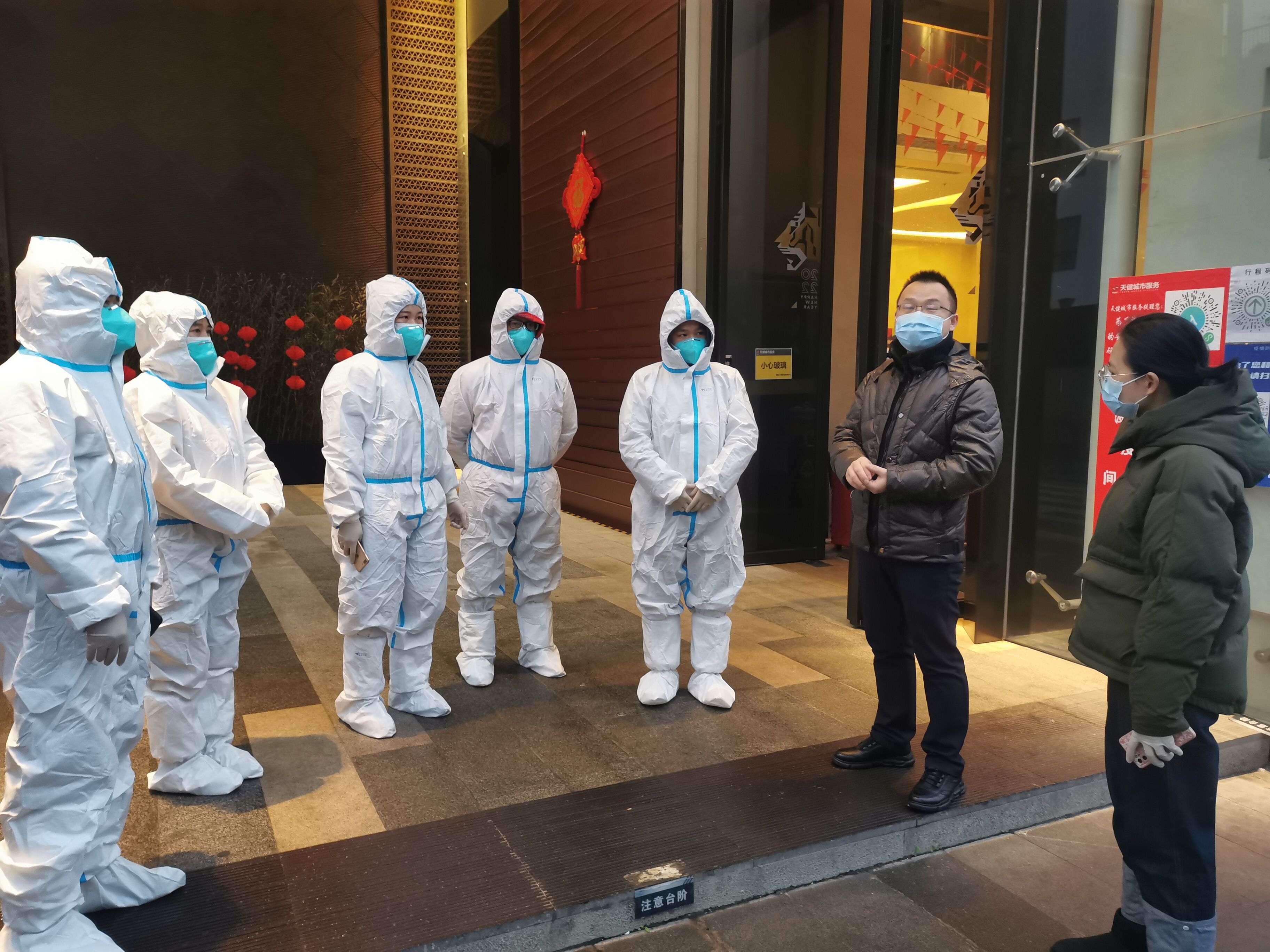 “您好!我們是疫情防控工作人員,由于在疫情排查過程中發(fā)現(xiàn)您的健康碼處于紅碼狀態(tài),因此要對您實行居家隔離措施,我們現(xiàn)在將在您的門口外安裝隔離門禁,請您按防控要求進(jìn)行居家隔離等待上門核酸檢測?!睘樽龊靡咔榉揽毓ぷ鳎U先罕娚踩?,有效控制和降低新冠肺炎疫情傳播風(fēng)險,切實落實常態(tài)化疫情防控工作的各項措施,2月10日,綠港集團(tuán)迅速行動,配合社區(qū)工作人員對小區(qū)的居民進(jìn)行掃碼排查,并對排查出的黃碼、紅碼人員實行居家隔離措施。每到一戶,綠港集團(tuán)的工作人員針對居民的疫苗接種情況、家庭成員信息、近期出行軌跡進(jìn)行詳細(xì)摸排,認(rèn)真開展“三碼聯(lián)查”、測溫登記工作,從嚴(yán)從細(xì)防范疫情輸入。同時向居民宣傳疫情防護(hù)相關(guān)常識,告誡大家出門記得佩戴口罩、勤洗手多通風(fēng),盡量避免去人群聚集場所,關(guān)注官方權(quán)威發(fā)布,做到不信謠、不傳謠。